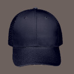 Front: 100% CottonBack: 100% Polyester Mesh Structured Firm Front Panel Low-Fitting 6 panel cap Seamed Front Panel with Full Buckram 6 Sewn Eyelets Matching Visor Edge Color Pro Stitch on Crown 6 Rows Stitching on Visor Matching Fabric Undervisor Matching Color Sweatband Plastic Adjustable Snap Size: OSFM - Adult (58cm/22.8")